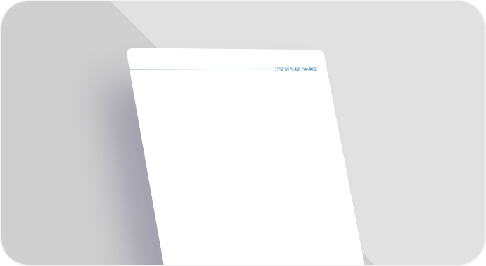 COST OF BLADE DAMAGE Reducing operating costs Ongoing monitoring of the condition and structural health of the blades allows for early detection of faults. Detecting a change in the blades condition or performance enable Operators to make pro-active choices to protect the turbine and minimise further damage. Thus signi昀椀cantly reducing both turbine downtime and the overall repair costs. Early detection ensures faults are addressed before they become severe, reducing the risk of unexpected failures and costly new blades. Monitoring also plays a critical role in optimising scheduled maintenance. Using Insensys data Operators have a enhanced view of the condition of blades allowing for predictive maintenance strategies to be utilised. Overall using a sensing system to detect turbine structural problems early you can reduce maintenance costs by $0.75/kWh, offering potential savings of over $500,000 per turbine.